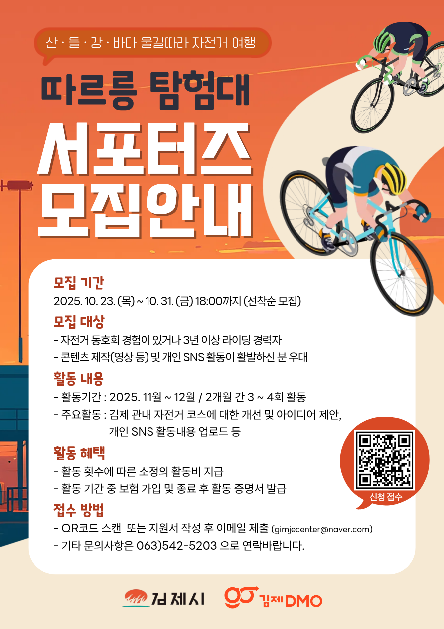 산·들·강·바다 물길을 따라 달리는 **김제 자전거 여행 프로젝트 ‘따르릉 탐험대’**에서